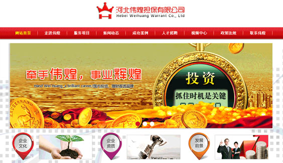 負責河北偉煌擔保有限公司網(wǎng)站設計制作開發(fā)等網(wǎng)站建設服務,偉煌擔保是以金融行業(yè)等相關(guān)配套服務為主,故網(wǎng)站設計以橙、黃為主題,突出金融行業(yè)鮮亮的主題,符合行業(yè)特點。