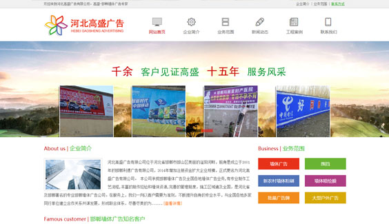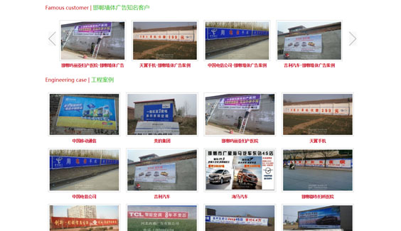 服務內(nèi)容:墻體廣告、戶外墻體噴繪、大型墻體粉刷、村鎮(zhèn)及廠區(qū)墻體美化,和批量墻體廣告牌,施工區(qū)域逐年擴展,除有一支強有力的專業(yè)美工設計隊伍外,在工程項目施工過程中均采取技術質(zhì)量指標化、標準化,特殊要求特殊制作的方式。并在實踐中形成了統(tǒng)一供料、統(tǒng)一制版、統(tǒng)一制作、統(tǒng)一驗收四個統(tǒng)一標準。以確保墻體廣告的質(zhì)量和視覺沖擊效果。