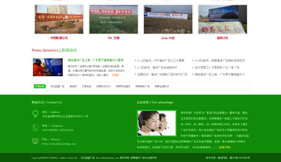 公司成立以來,與中國移動、中國聯(lián)通、中國電信、中國人壽、泰康人壽、平安保險,華北制藥,神威制藥,邯鄲都市婦科醫(yī)院,邯鄲瑪利亞醫(yī)院,邯鄲蘊育醫(yī)院,美的集團,康佳集團,TCL電器,江淮汽車,吉利汽車,東風汽車,長安汽車,豐田汽車,雪鐵龍汽車,啟辰汽車,五菱汽車,萬合集團等近千家國內(nèi)大型集團公司長期合作。公司業(yè)務覆蓋東北三省,河北,河南,山東,山西,湖北,湖南,廣西,云南,江西,江蘇浙江,安徽等全國大部份省市,每月可完成50萬平方的廣告任務。