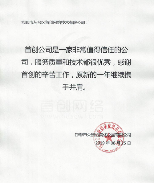 邯鄲市朵妍怡美化妝品有限公司對我公司評價(jià)